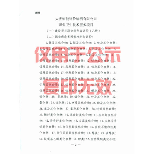 公司2007年9月**獲得黑龍江省衛(wèi)生廳職業(yè)衛(wèi)生技術(shù)服務(wù)機(jī)構(gòu)乙級(jí)資質(zhì)證書(黑衛(wèi)職認(rèn)字[2007]第093號(hào));2012年9月10日獲得黑龍江省衛(wèi)生廳公共場(chǎng)所技術(shù)服務(wù)機(jī)構(gòu)**技術(shù)能力考核合格批復(fù)文件,成為全省首家合法開展公共場(chǎng)所檢測(cè)的技術(shù)服務(wù)機(jī)構(gòu)。2015年6月通過黑龍江省安全生產(chǎn)監(jiān)督管理局續(xù)展審查,資質(zhì)證號(hào)為黑安職技字(2015)第B-0011號(hào);2018年5月月通過黑龍江省安全生產(chǎn)監(jiān)督管理局續(xù)展審查,新資質(zhì)證號(hào)為(黑)安職技字(2018)第B-0011號(hào),有效期*2021年6月4日。職業(yè)衛(wèi)生檢測(cè)、評(píng)價(jià)的業(yè)務(wù)范圍包涵石油和天然氣開采業(yè);金屬、非金屬礦采選業(yè)和工程建筑業(yè);冶金、建材;化工、石化及醫(yī)藥;輕工、紡織、煙草加工制造業(yè);機(jī)械、設(shè)備、電器制造業(yè);電力、燃?xì)饧八纳a(chǎn)的供應(yīng)業(yè);運(yùn)輸、倉(cāng)儲(chǔ)、科研、農(nóng)林、公共服務(wù)業(yè)等八大行業(yè)100個(gè)項(xiàng)目。是省內(nèi)服務(wù)范圍較為**的職業(yè)衛(wèi)生技術(shù)服務(wù)機(jī)構(gòu)之一。